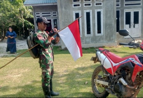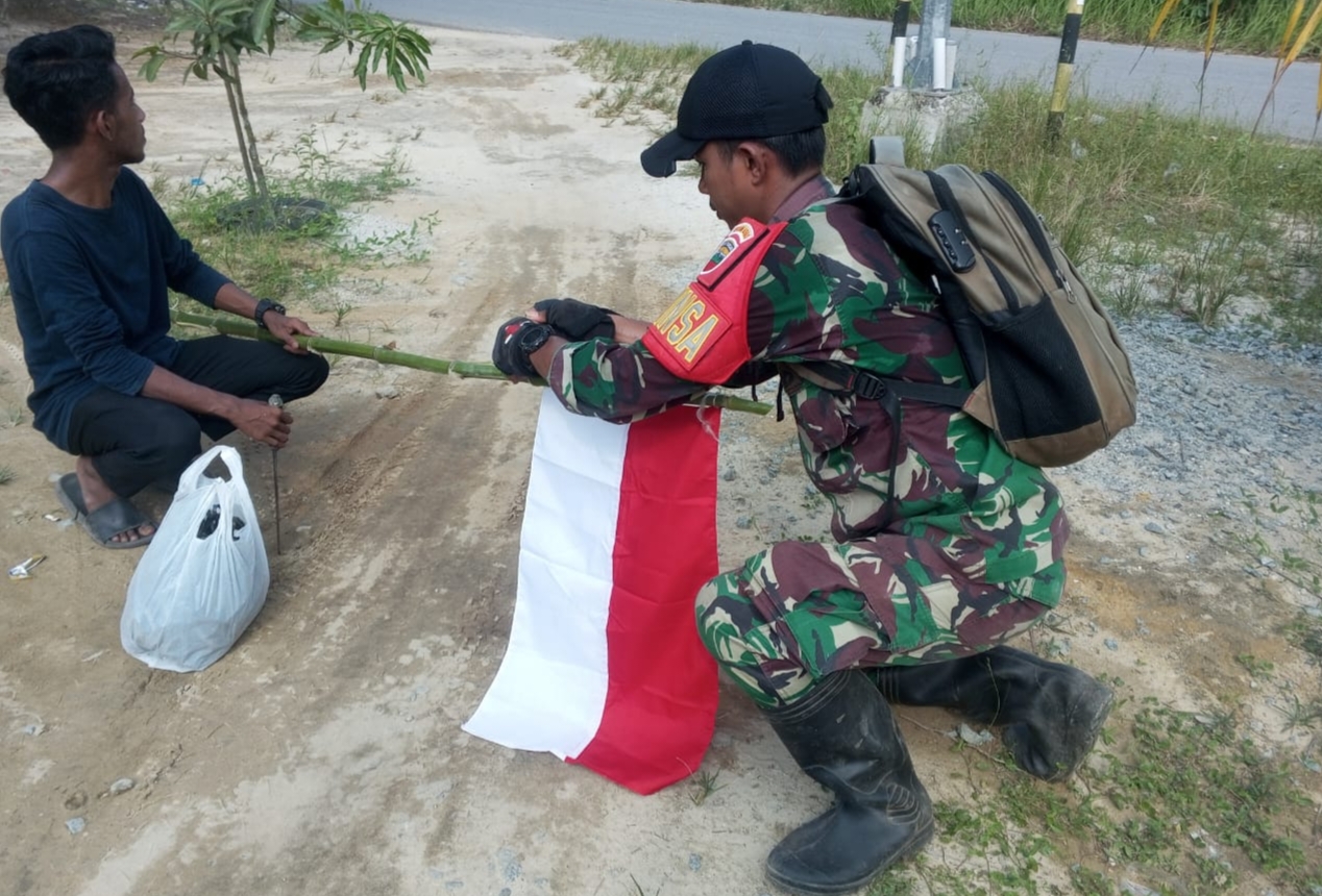 BENGKALIS | Publik.News – Menyambut Hari Ulang Tahun (HUT) ke-80 Republik Indonesia, Babinsa Desa Koto Pait Beringin, Kecamatan Talang Muandau, Kabupaten Bengkalis, melaksanakan aksi simpatik dan humanis berupa pemasangan bendera Merah Putih di halaman rumah warga yang belum memasangnya.