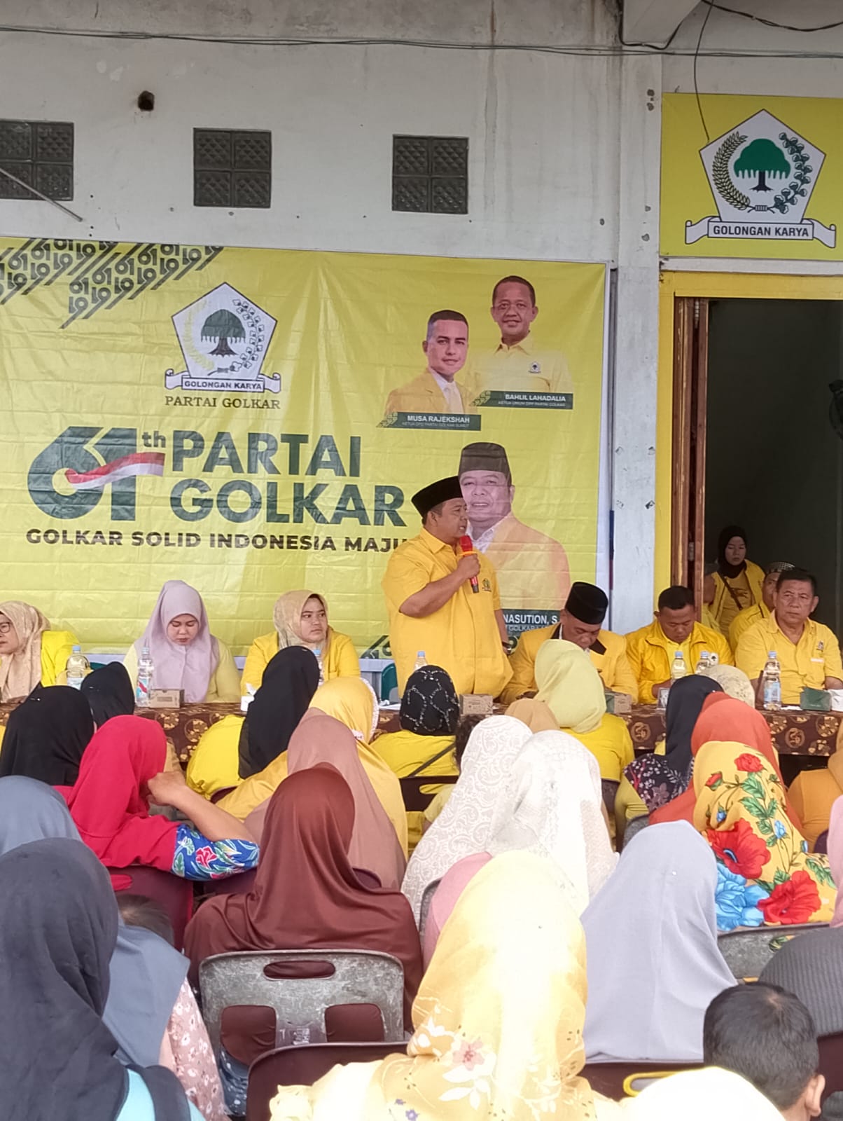 DPD Golkar Labuhanbatu Selatan (Labusel) menggelar kegiatan HUT partai Golkar ke 61 tahun, dihadiri ratusan masyarakat di kantor DPD Golkar jalan Lintas Sumatera, Simaninggir Kotapinang, Senin (20/10/2025).